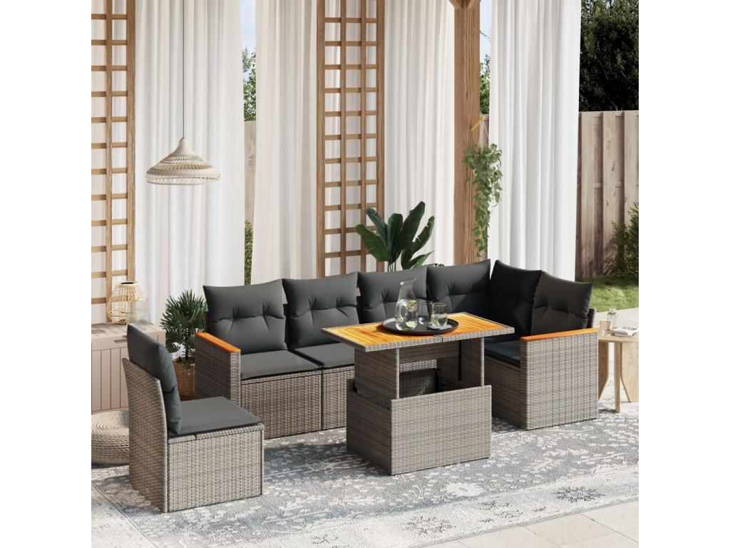 Set di mobili da esterno in vimini intrecciato in resina grigia