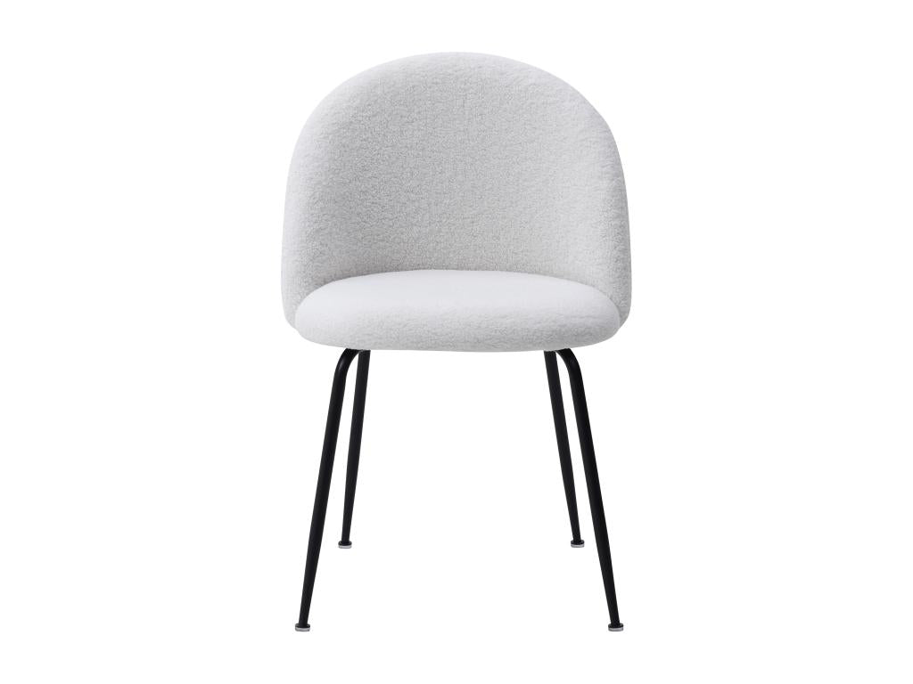 La combinazione di tessuto Boucle bianco crea un'atmosfera accogliente e terrosa